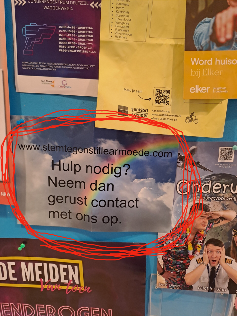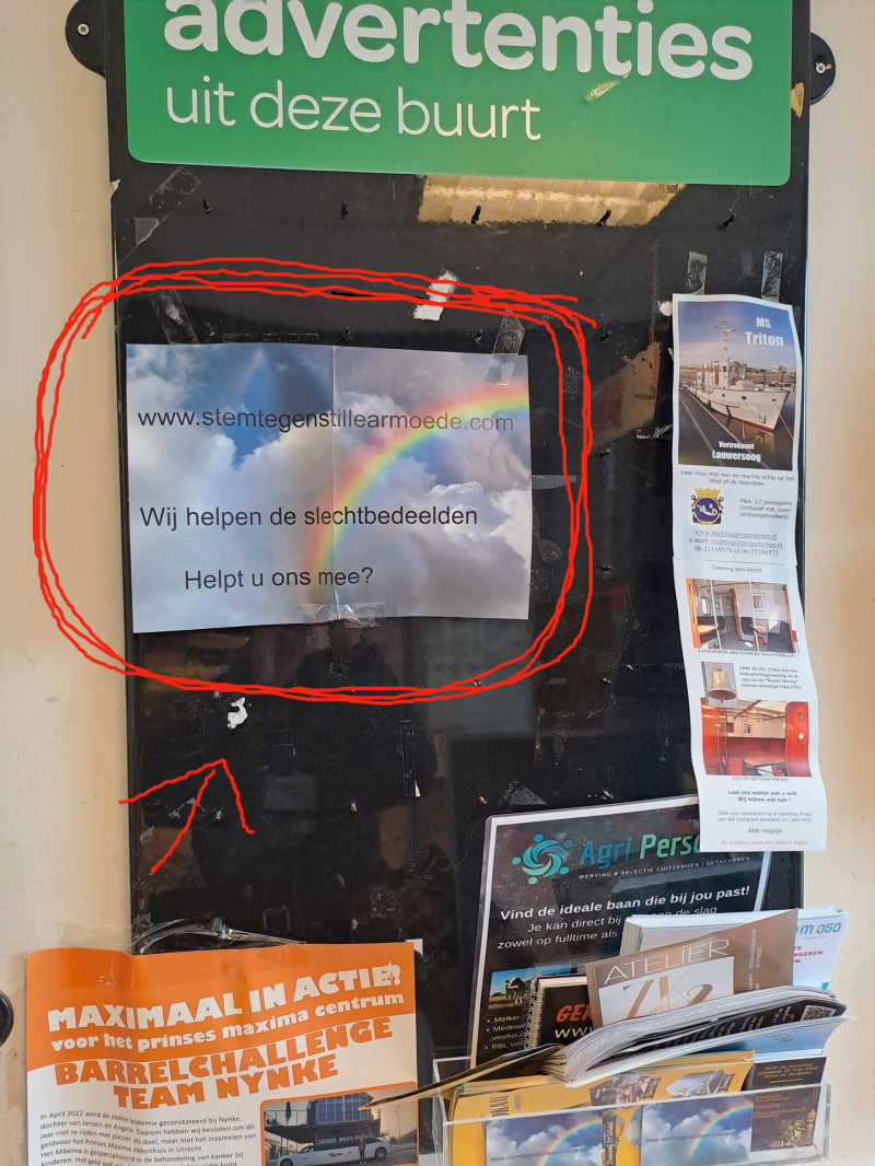 Flyers op het prikbord in diverse supermarkten gemeente Het Hogeland, Westerkwartier en Friesland verspreid.