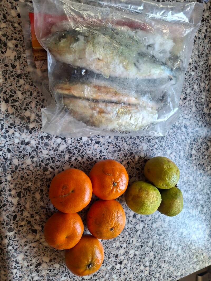 Even weer boodschappen bij iemand gebracht. (Fruit, melk,eieren,toetje, 3 x vleeswaren,rookworst en een zoute haring. )